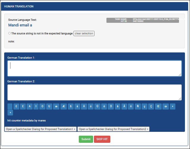 Fügen Sie Ihre Übersetzung in Feld “Translation 1” und die zweite Übersetzung in Feld “Translation 2”, wenn nötig, und klicken Sie auf Submit.